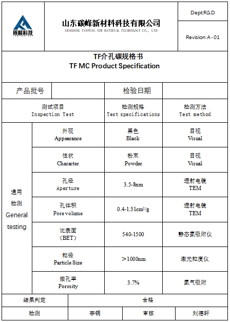 介孔碳就其本身的应用而言,由于其具有的高比表面积和高吸附容量,是一种理想的吸附材料。利用其吸附性能来分离生物大分子、有机大分子和重金属离子等。也可应用于能量储存和电化学领域,利用其储存在电极与电解液界面的双电层能量,在超级电容器方面有着巨大的发展潜力。介孔碳CMK-5的碳骨架是由糠醇聚合物高温分解形成,碳骨架的内在特性和高度有序的石墨结构使其兼具较高的贮能能力和较快的锂离子迁移能力,有望应用于锂离子电池领域。